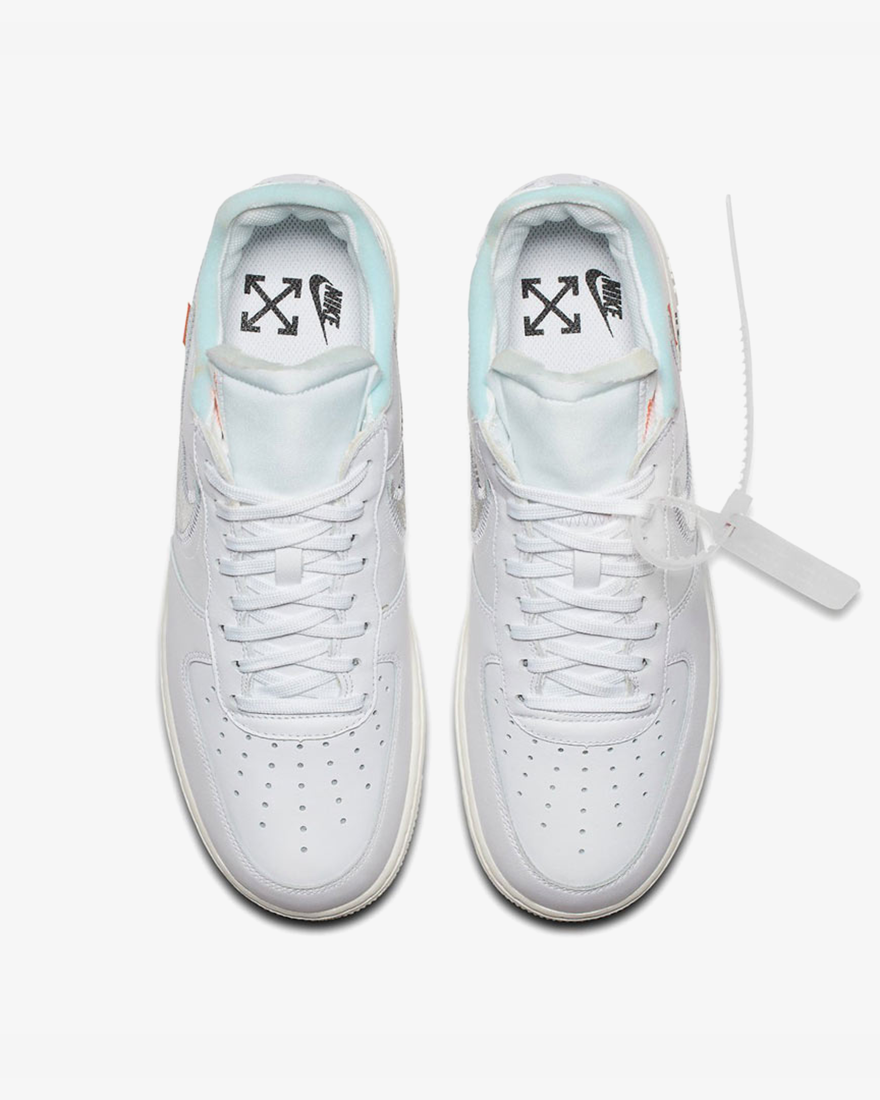 La Off-White x Nike Air Force 1 « ComplexCon », imaginée par Virgil Abloh (décédé le 28 novembre 2021) pour les 35 ans de la AF1, devait sortir en mai 2018. La silhouette propose une empeigne en cuir blanc contrastée par un swoosh argenté, une touche de bleu sur le lining et le rectangle orange latéral. On retrouve ainsi les différents éléments Off-White à l’instar du « AIR » sur la midsole de couleur blanche cassée, et les logos des deux marques sur les semelles intérieures.
