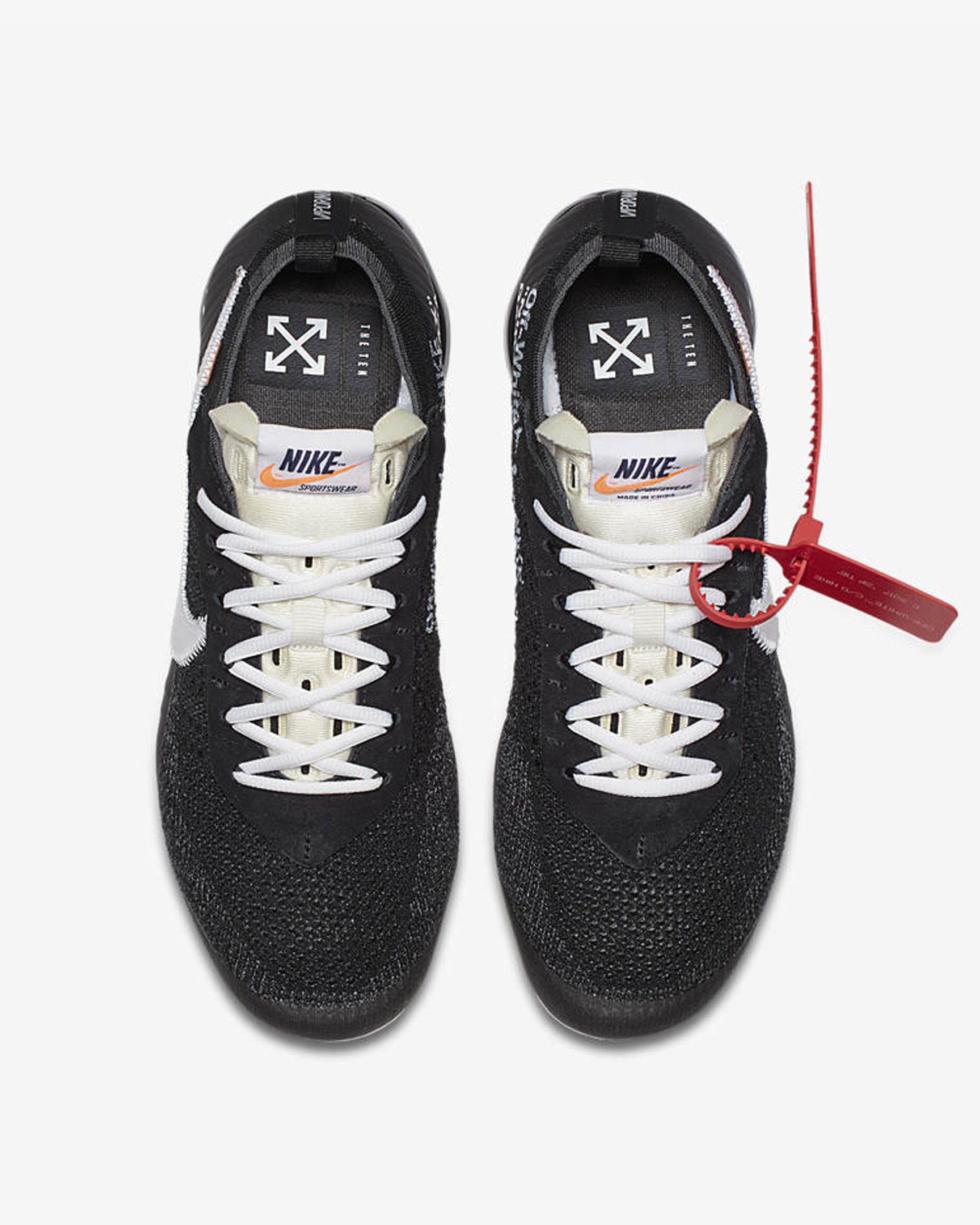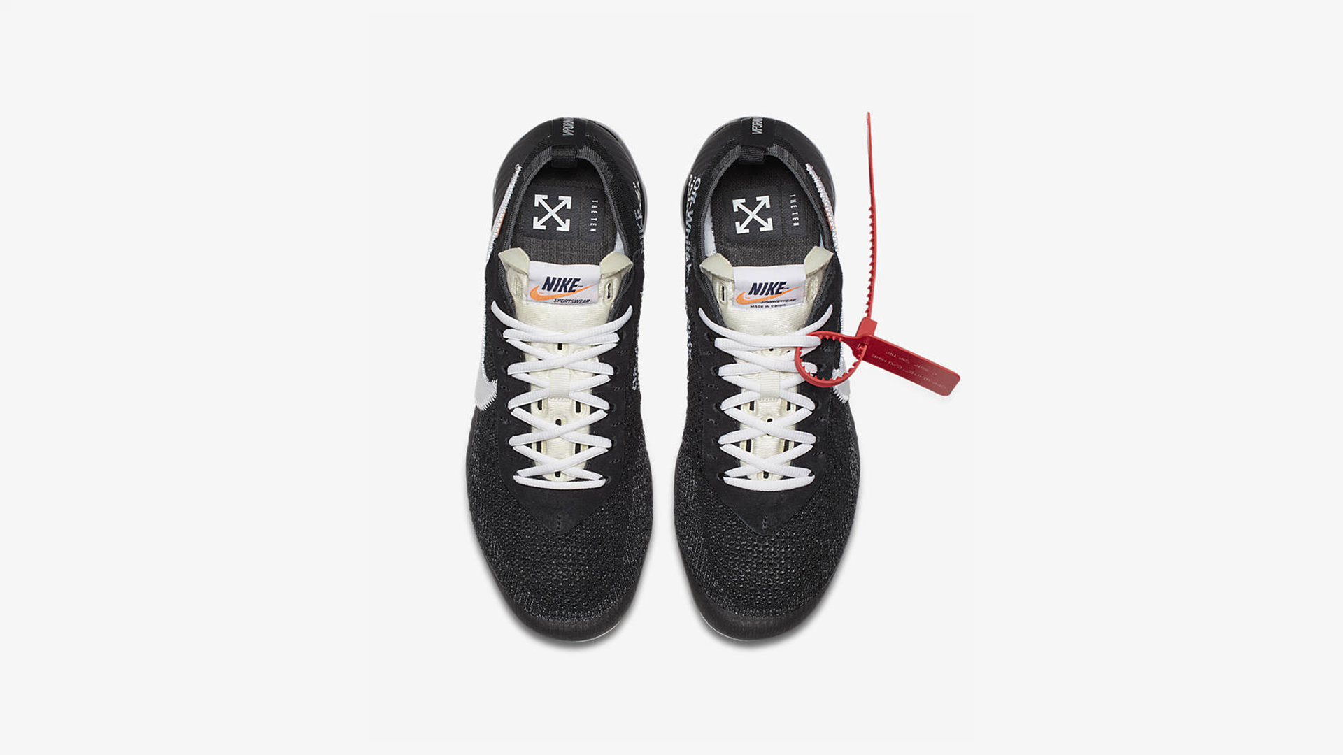 La collaboration Off White x Nike Air VaporMax 10X entre Virgil Abloh et la marque au swoosh fera ses débuts cet automne. Issue de la collection 10X, la nouvelle silhouette conçue par Nike et introduite lors du Air Max Day arrive dans une version déconstruite. Le upper en Flyknit noir affiche un swoosh blanc contourné de surpiqûres avec un petit rectangle orange sur le dessus.
